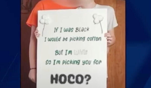 The sign was posted in a Facebook group over the weekend and showed two white teens holding the invite. The message was written with a green marker and said: “If I was Black, I would be picking cotton. But I’m White so I’m picking you for Hoco,” according to WOWT.