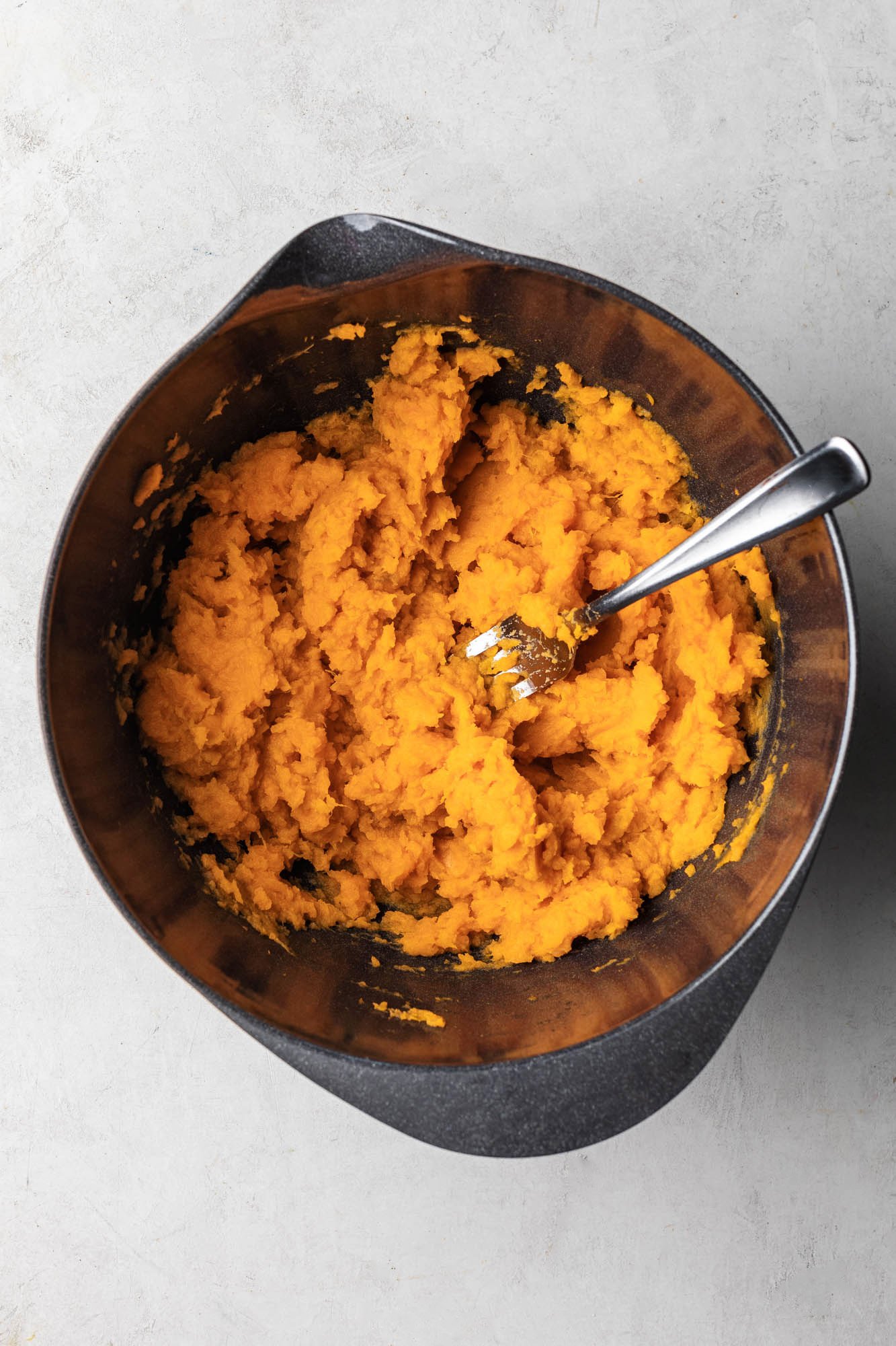 - Transfer the cooled sweet potatoes to a large mixing bowl.