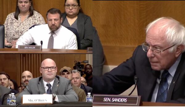 “This is a hearing. God knows the American people have enough contempt for Congress, let’s not —” Sanders continued but was cut off by Mullin and O’Brien, who tossed potshots at each other.