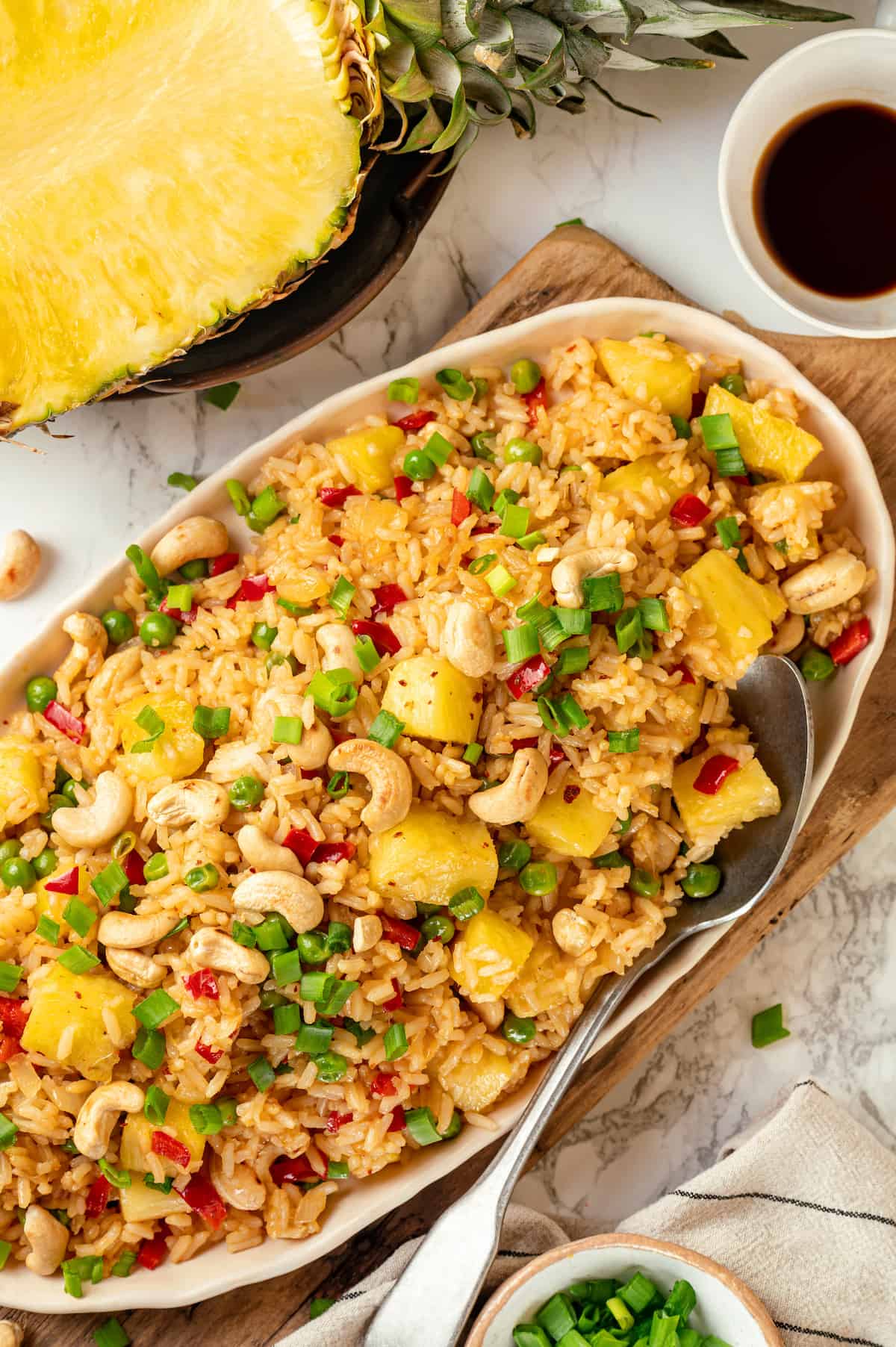 Sweet, tangy pineapple adds a burst of tropical goodness to the dish, making it stand out from traditional fried rice recipes!