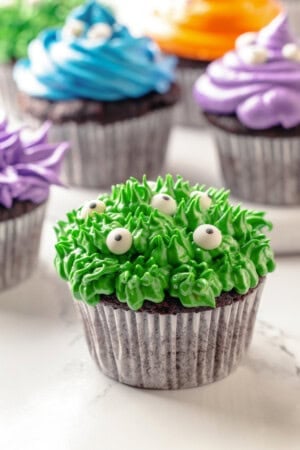 If you want to make the cupcakes in advance, bake and freeze the unfrosted cupcakes for up to 2 months. Make sure to wrap them well and put them in a freezer-safe container. Then, thaw them at room temperature on the day you plan to decorate: whip up your frosting, decorate as desired and serve!