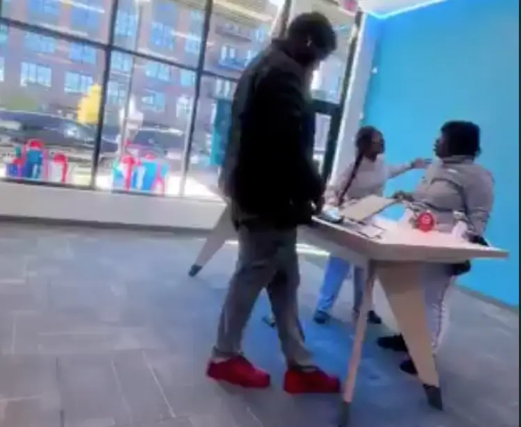A teenager’s explosive outburst inside a cellphone retailer has drawn millions of views online.