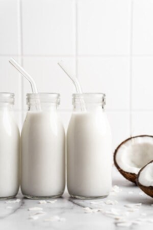 Do you ever watch those influencers on TikTok who seem to make everything from scratch? Okay, I may have fallen down that rabbit hole personally (as evidenced by my posts on How to Make Sprinkles and How to Make Almond Milk), but there really is something so satisfying about making the kitchen staples you usually buy. And in that spirit, I’m sharing this creamy, incredibly tasty homemade coconut milk recipe! Yep, you can make coconut milk at home—and no, you don’t need to crack open a bunch of coconuts to do it. (Although I have made coconut milk from coconuts and it is so satisfying and delicious!)