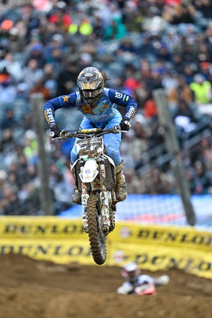 Malcolm Stewart jumps during the Monster Energy AMA Supercross Championship on April 12 at Lincoln Financial Field in Philadelphia.