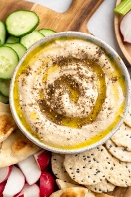 It’s not just for dipping! I love slathering this cauliflower hummus onto tortillas and wrapping them up with romaine, diced tomatoes, cucumbers, and Crispy Homemade Falafel. You can also spread it onto buns with veggie burgers (like these Quinoa Burgers!) as a lighter vegan alternative to mayo.