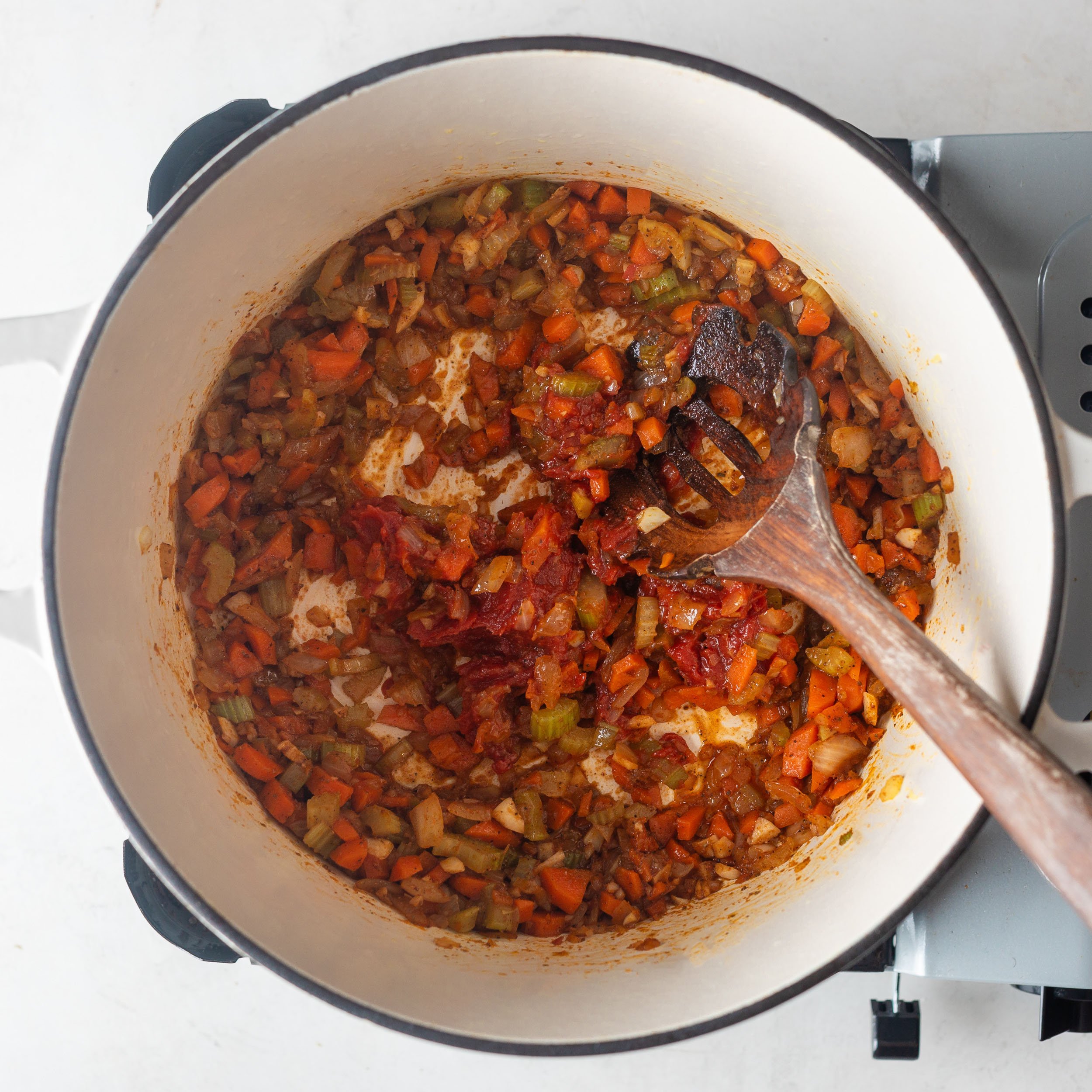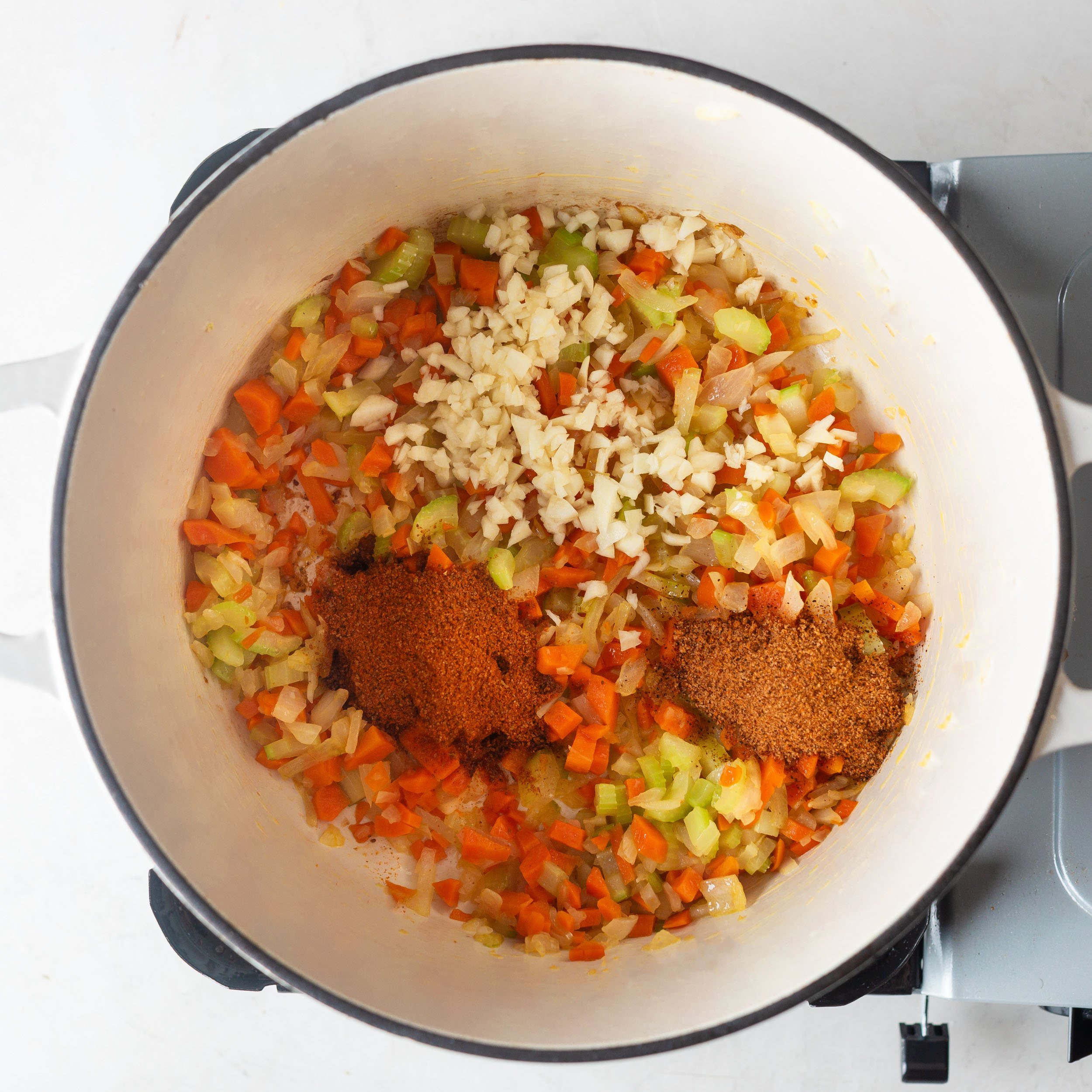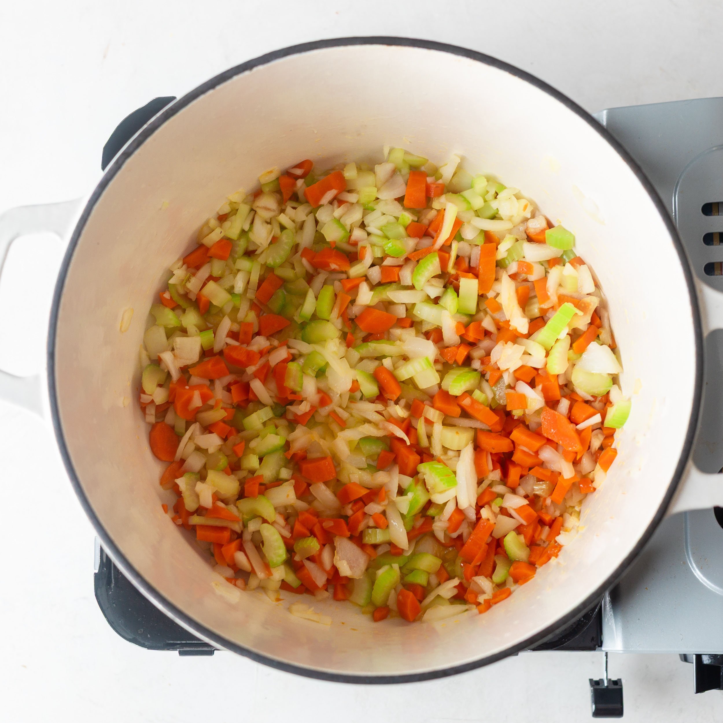 Add the celery, carrots, and onion. Cook, stirring occasionally, until the onion is translucent and the carrots begin to soften, about 8–10 minutes.