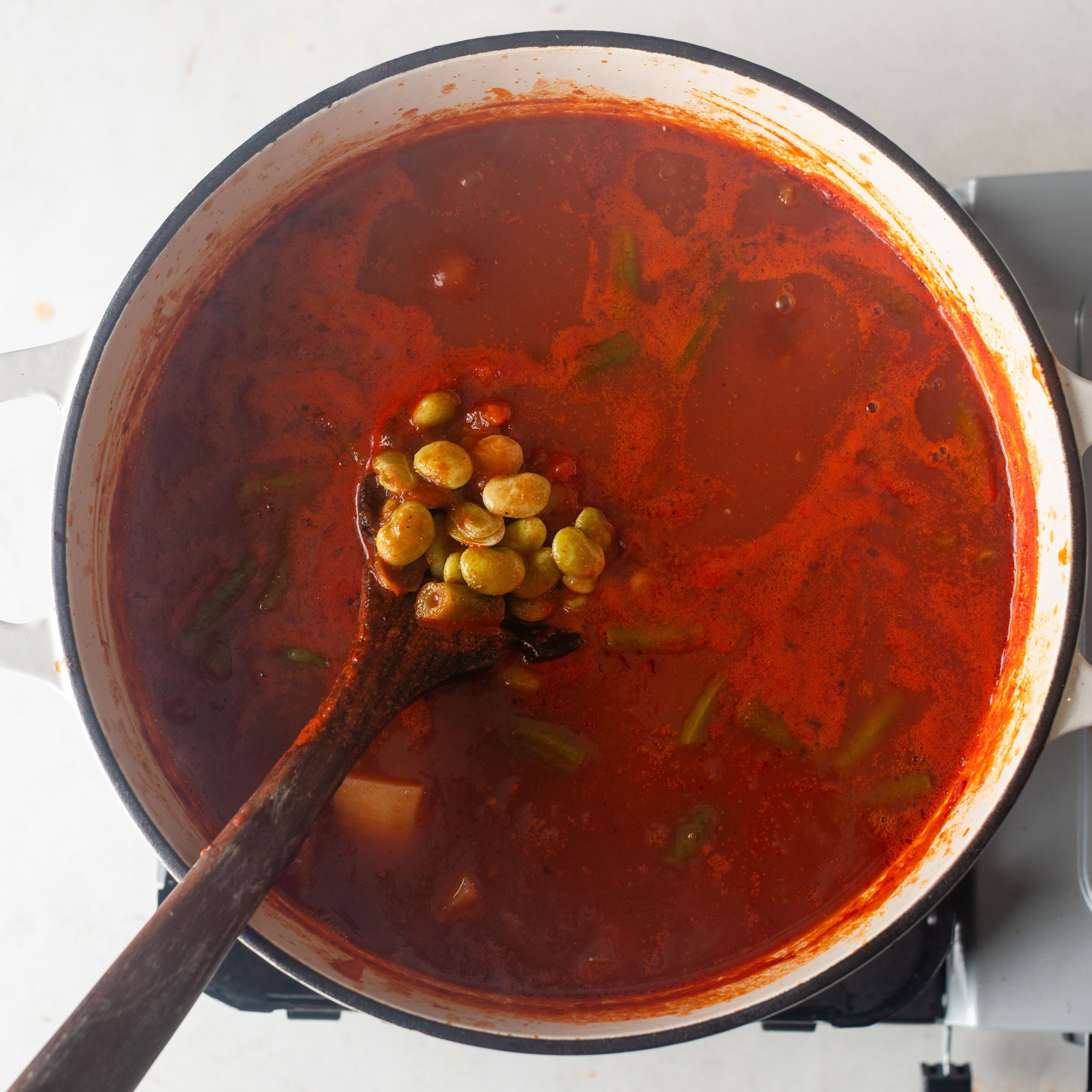 Step 5: Add lima beans and continue simmering.
