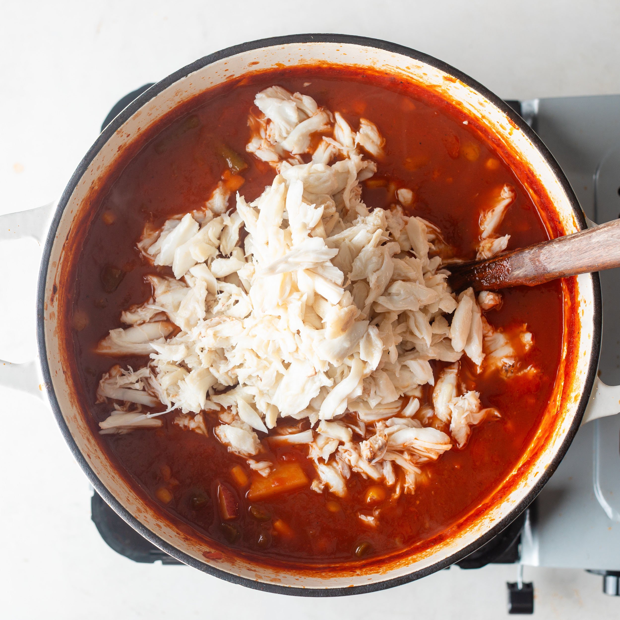Turn off the heat and gently fold in the crab meat. Cover and let the soup rest for 30 minutes so the flavors meld and the crab stays tender.