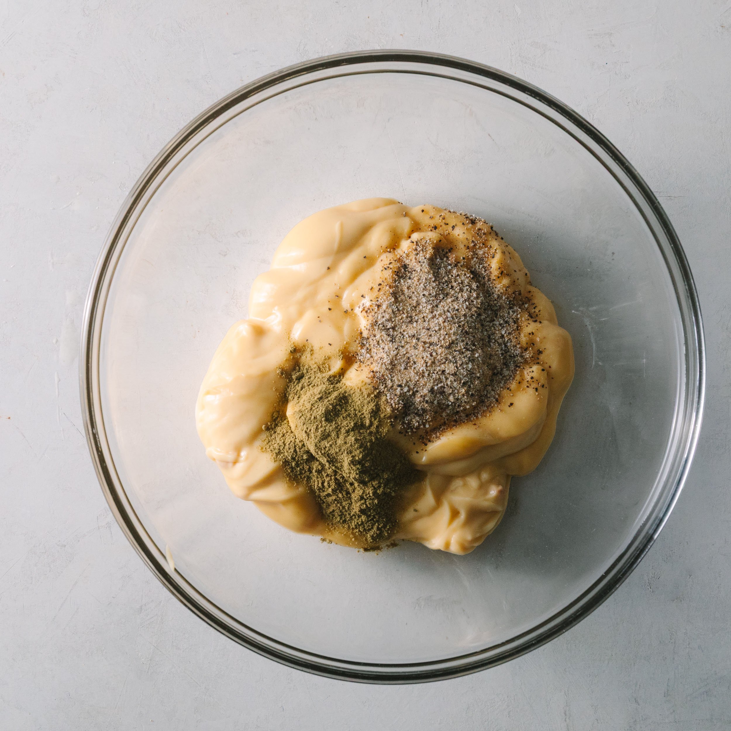 Step 2: Mix cream soups with seasonings in a large bowl.