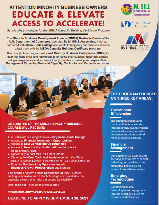 Home » Projects » (BPRW) Educate & Elevate – Access to Accelerate! M. Gill & Associates Launches MBDA Capacity Building Certificate Program at Miami Dade College