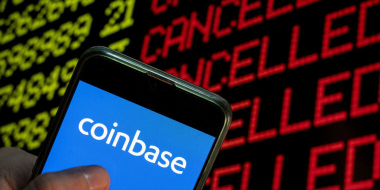 Enlarge / On Friday afternoon, Coinbase sent email and SMS text messages to 125,000 customers, erroneously telling them that their 2FA settings had been changed. (credit: SOPA Images)