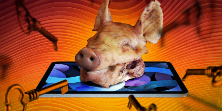 Enlarge / In this story, we’re going to learn about “pig butchering.” (credit: Aurich Lawson / Getty Images)